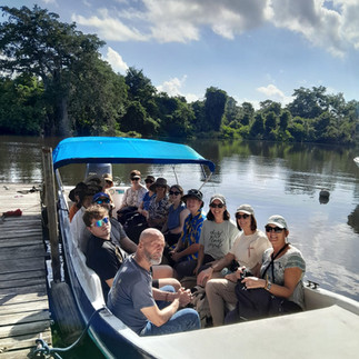 The 36 mile river ride to Lamanai took almost 2 1/2 hours! Before our trek to the ruins, we had a picnic lunch of chicken, rice and beans, potato salad, slaw, fried plantains, and choice of Fanta or Coke. As we ate, we could hear a troop of howler monkeys in the forest, sounding upset about something!